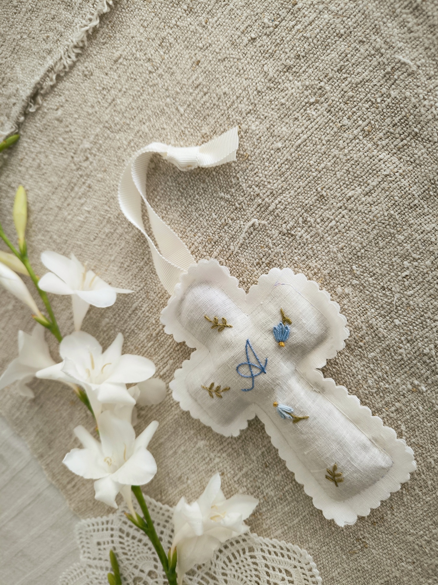 Cruz - jardim de flores 18,00 € Desconto de %. Partilhar personalização cor do bordado - Comprar Contactar a Cruz com o jardim de flores é uma peça única e especial que queremos guardar para sempre. um presente especial, uma peça de decoração, um símbolo de proteção! é bordada à mão em linho, com interior de alfazema e pode ser personalizada com a inicial Bordado à mão por encomenda. O prazo de entrega é de cerca de um mês.