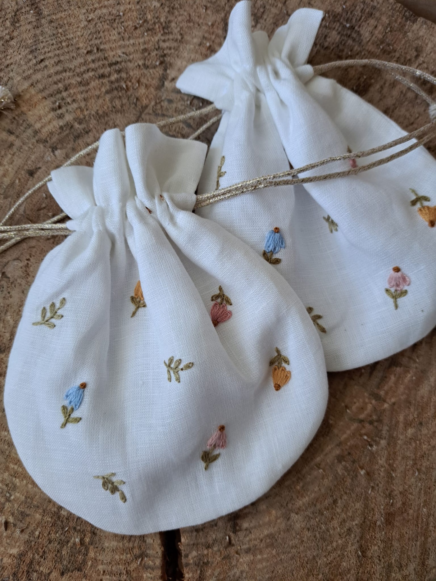 Todas as peças serão enviadas com um saquinho de linho, bordado à mão em linho