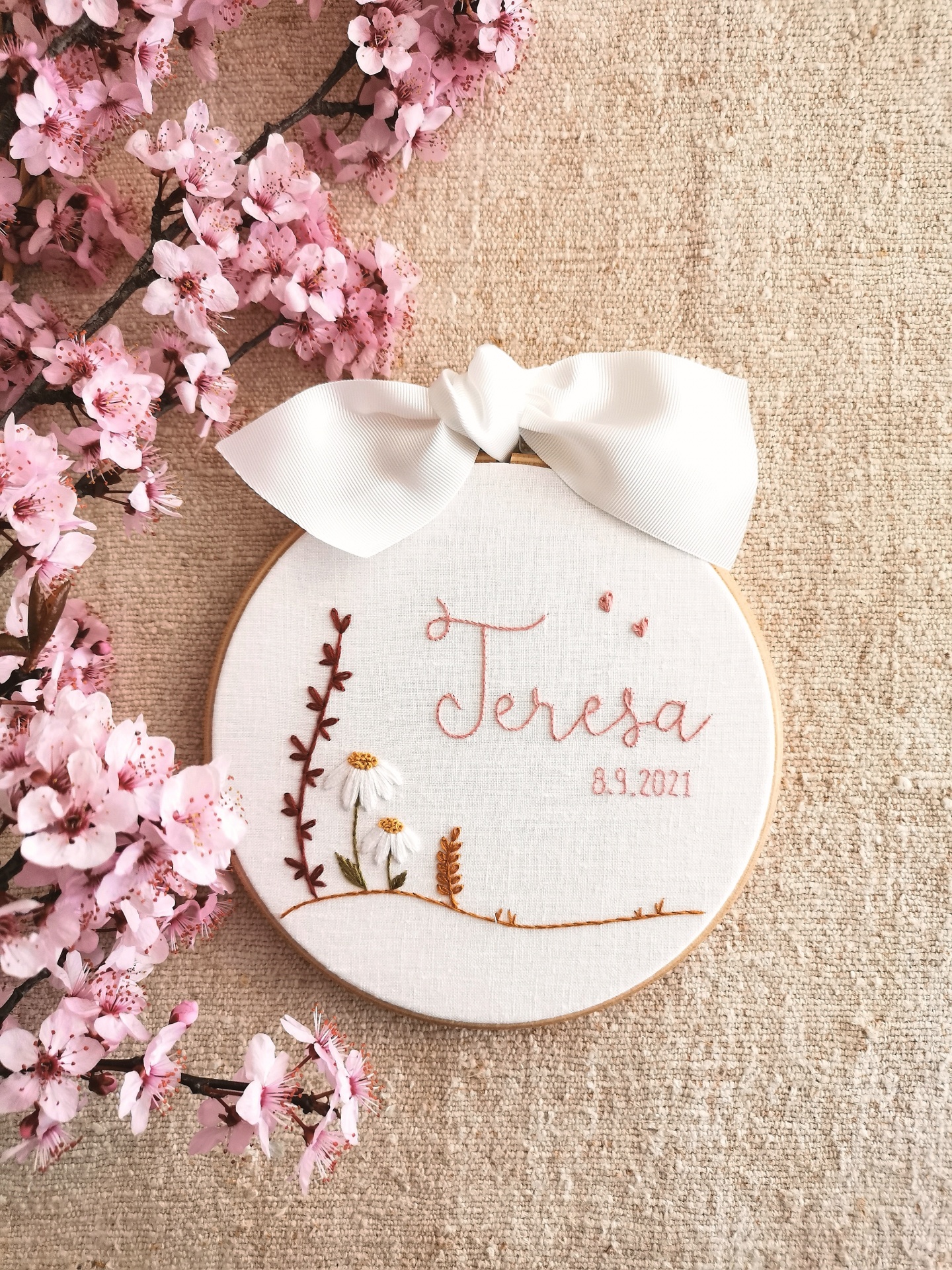 Bordado em linho - 12 cm de diâmetro