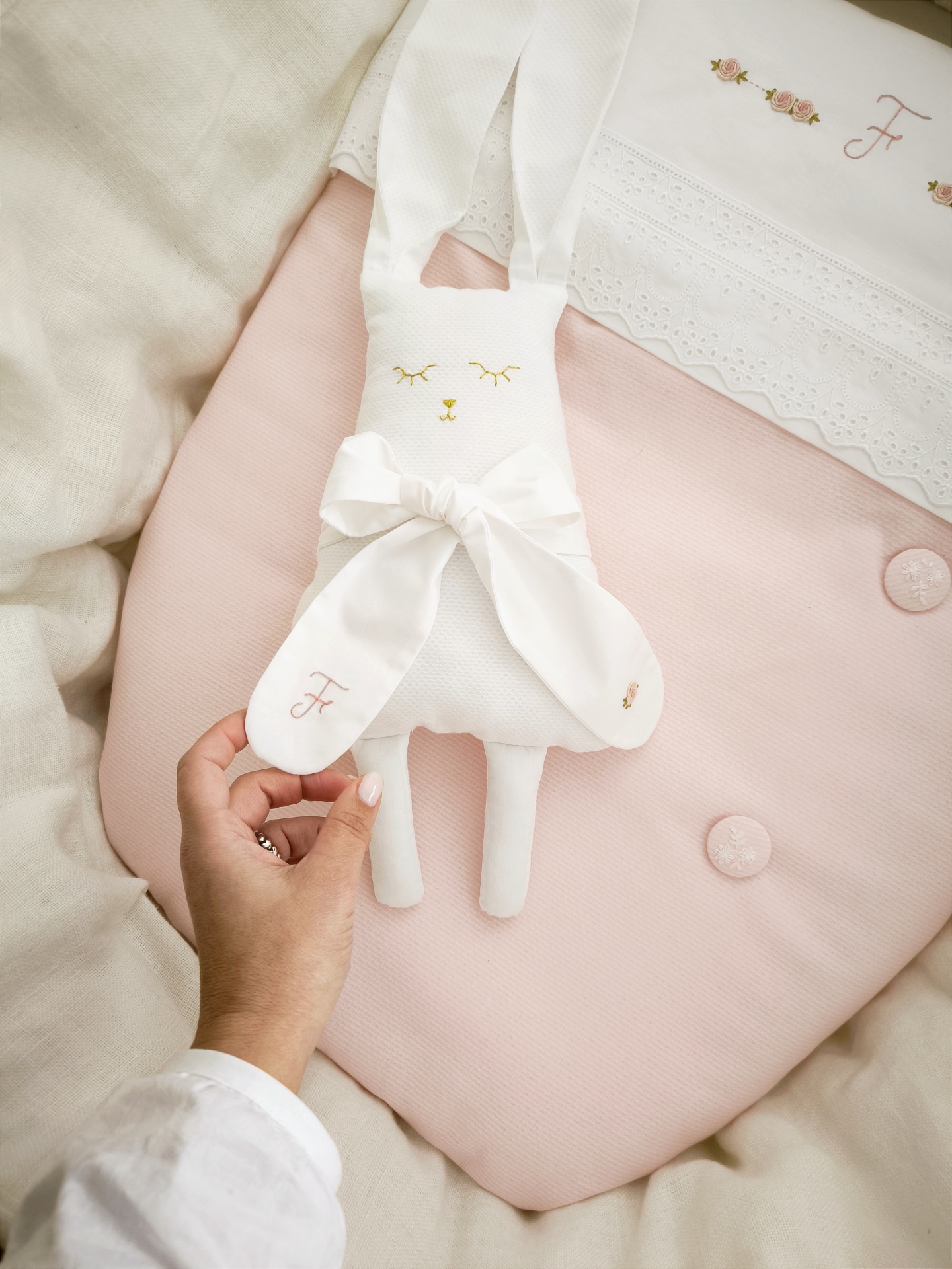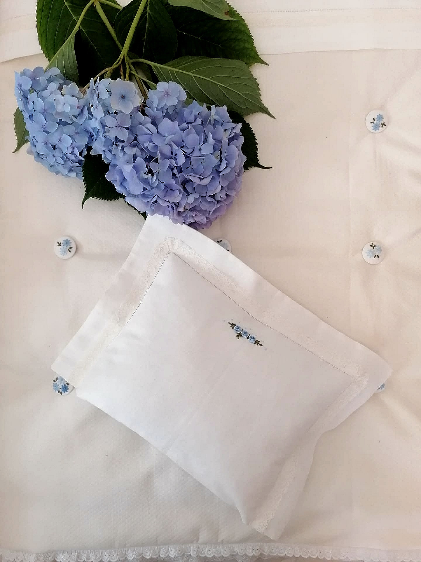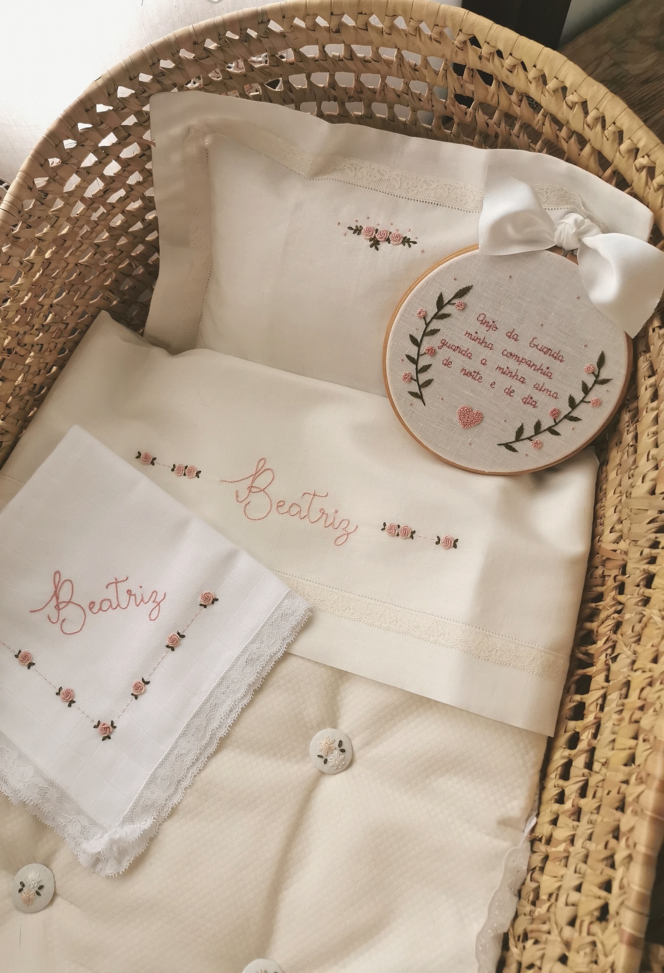 Colcha com detalhe de bordado 90,00 € Desconto de %. Partilhar cor Bege Rosa Azul tamanho mini berço (80*50) berço (120*60) Comprar Contactar As nossas peças são feitas à mão para criar os sonhos mais doces e mágicos. A colcha tem pequenos detalhes de flores ou incial bordadas e acabamento de bordado inglês . Bordado à mão por encomenda. O prazo de entrega é de cerca de um mês.