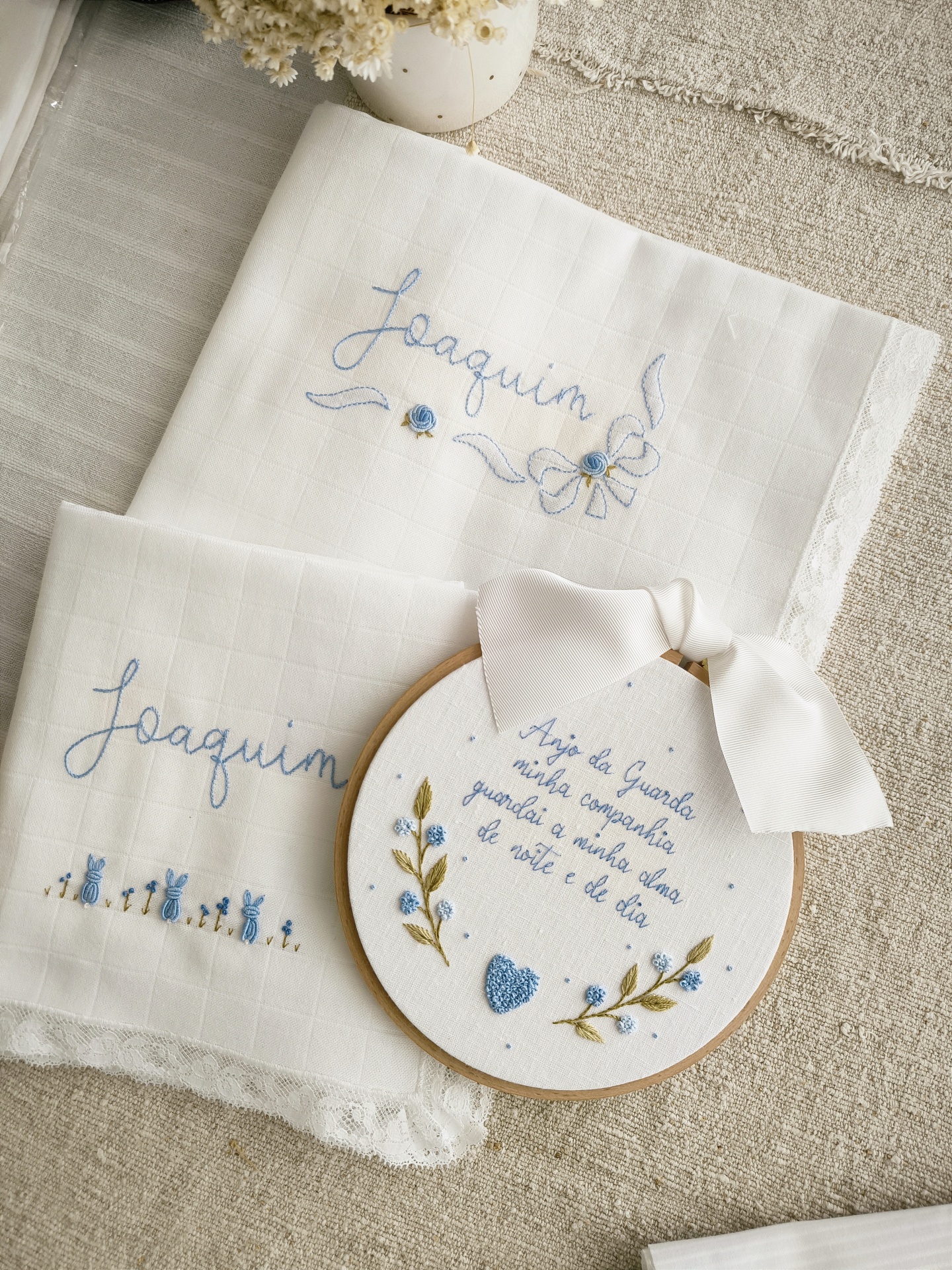 fralda personalizada 36,00 € Desconto de %. Partilhar Renda Valencienne estreita média larga bordado inglês personalização cor do bordado - Comprar Contactar SKU: F08S Fralda bordada à mão com muito cuidado e Amor num tecido suave para estar sempre junto ao seu Bebé, desde o primeiro momento. Tecido 100% algodão e com detalhe de renda valencienne ou bordado inglês 70*70 cm aproximadamente Bordado à mão por encomenda. O prazo de entrega é de cerca de um mês