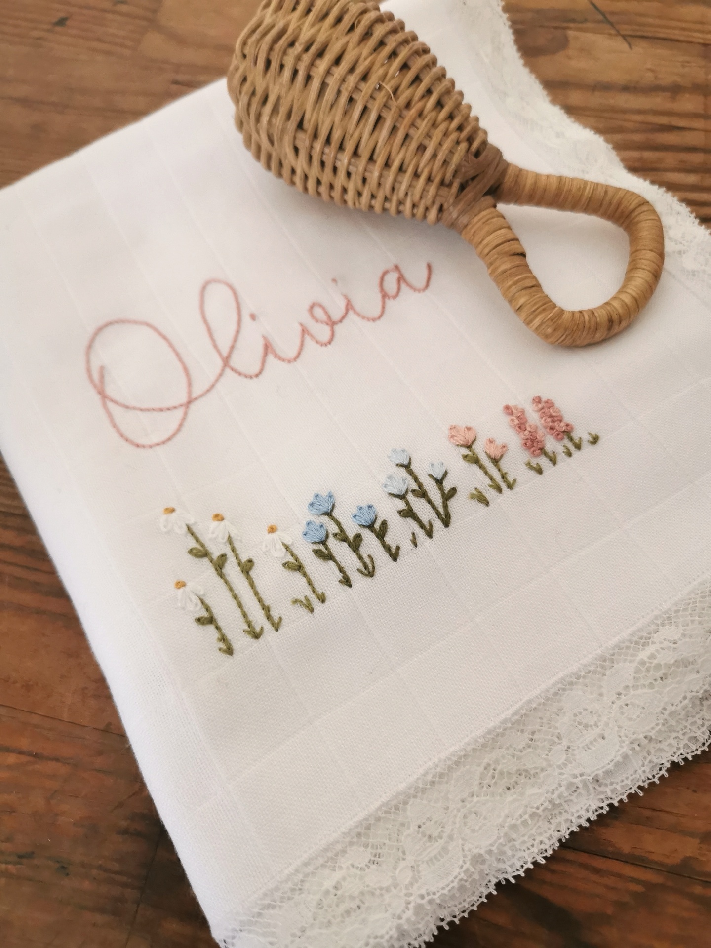 fralda personalizada 36,00 € Desconto de %. Partilhar Renda Valencienne estreita média larga bordado inglês personalização cor do bordado - Comprar Contactar SKU: F09S Fralda bordada à mão com muito cuidado e Amor num tecido suave para estar sempre junto ao seu Bebé, desde o primeiro momento. Tecido 100% algodão e com detalhe de renda valencienne ou bordado inglês 70*70 cm aproximadamente Bordado à mão por encomenda. O prazo de entrega é de cerca de um mês