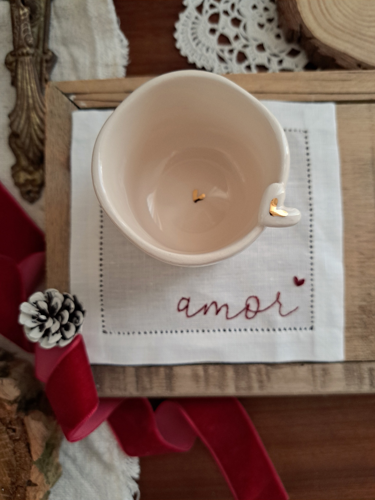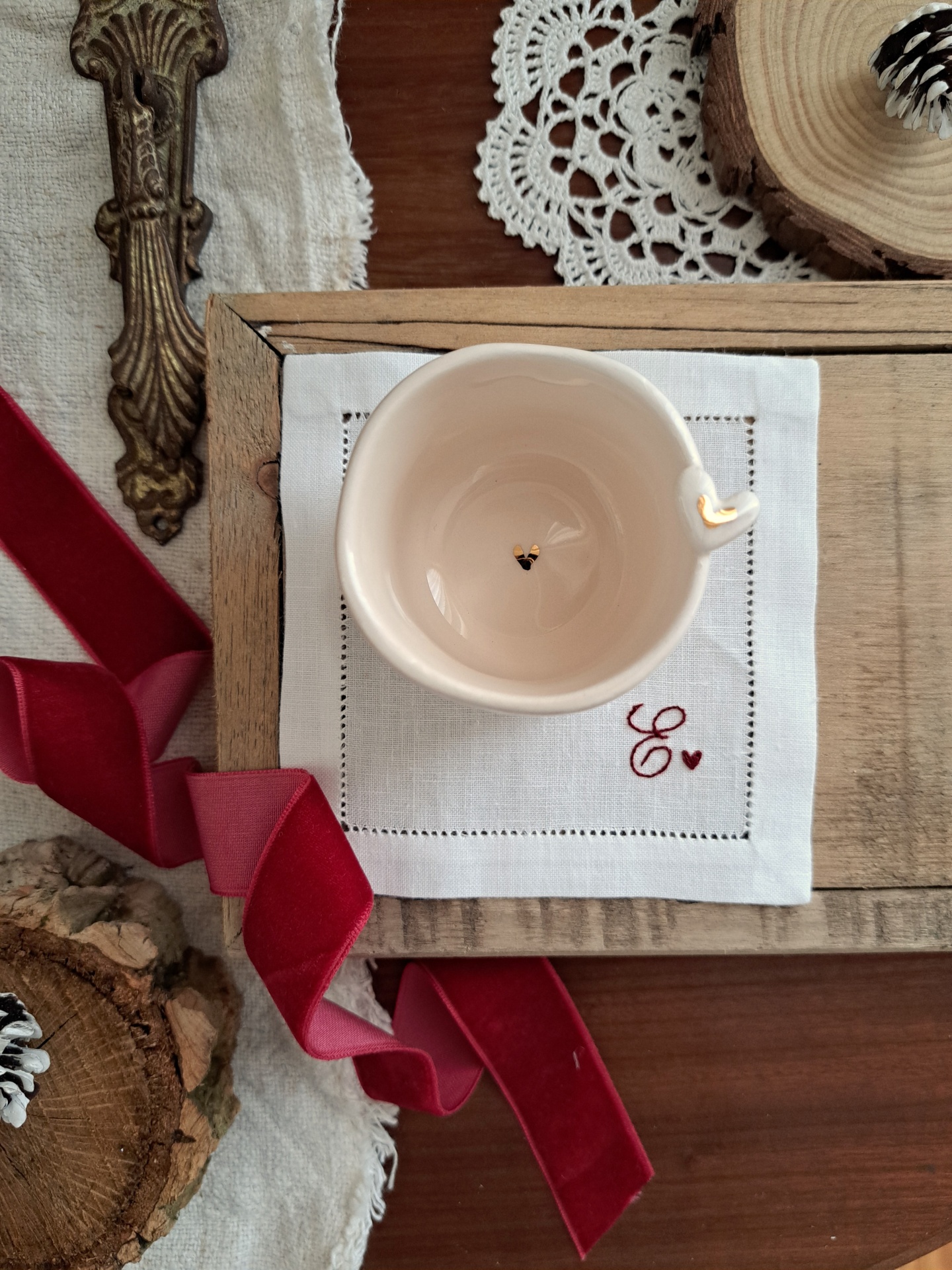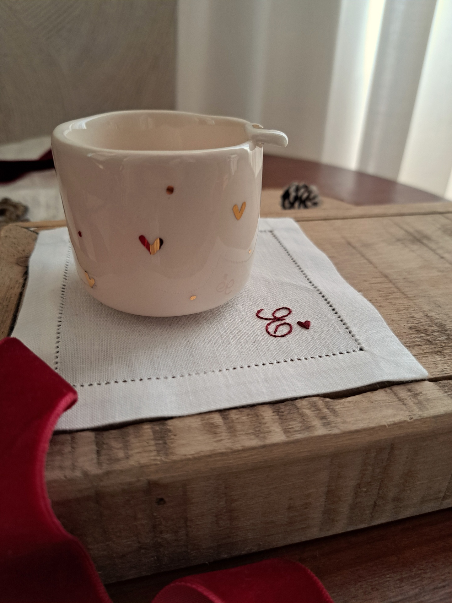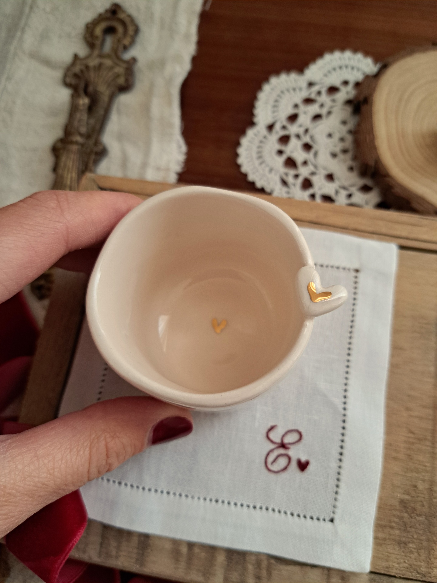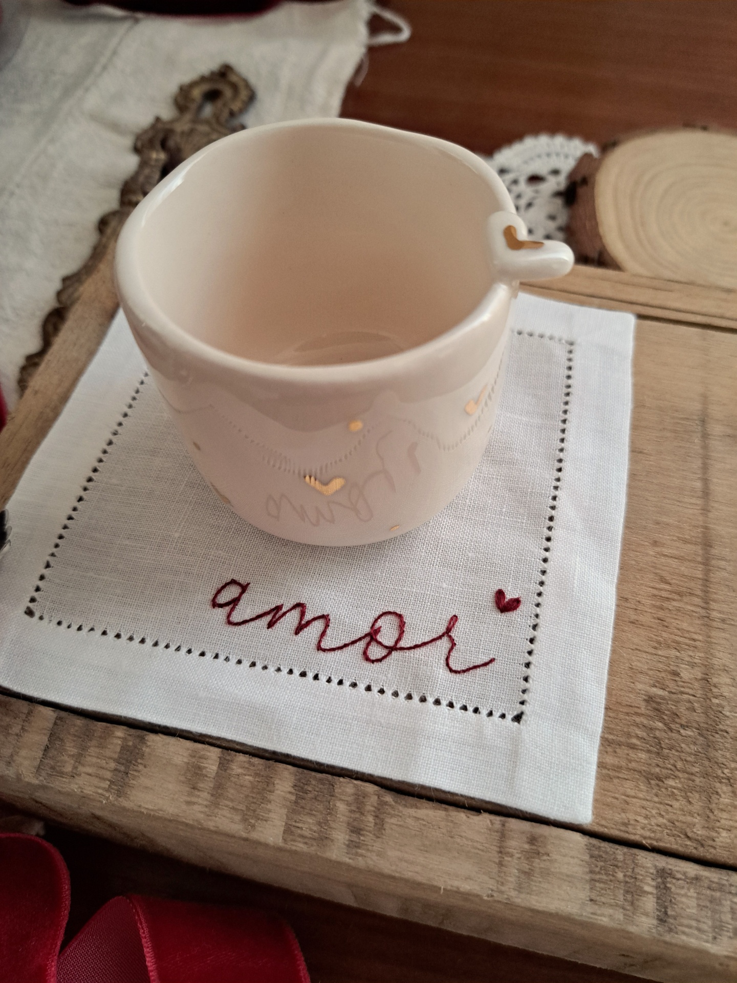 chávena coração e base em linho 20,00 € Desconto de %. Partilhar personalização Comprar Contactar SKU: pack3 conjunto de chávena de café expresso e base em linho a chávena é feita e pintada à mão pela querida Sílvia da Golden Bird café expresso 90ml - diâmetro 6 cm e altura 5.5 cm a base para copos é bordada à mão por mim, em linho puro e com acabamento de bainha aberta manual. Pode ser personalizada com uma ou duas iniciais 11.50 x 11.50 cm de diâmetro Todas as peças são únicas e feitas à mão uma a uma, poderão existir ligeiras variações de forma e tom e isso é o que as torna ainda mais especiais