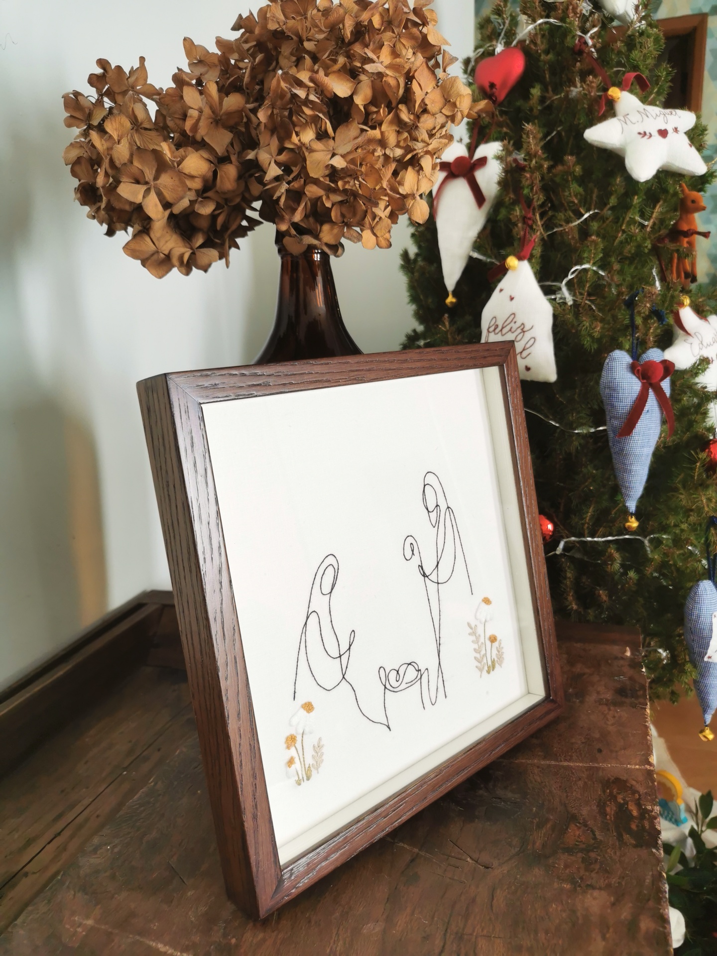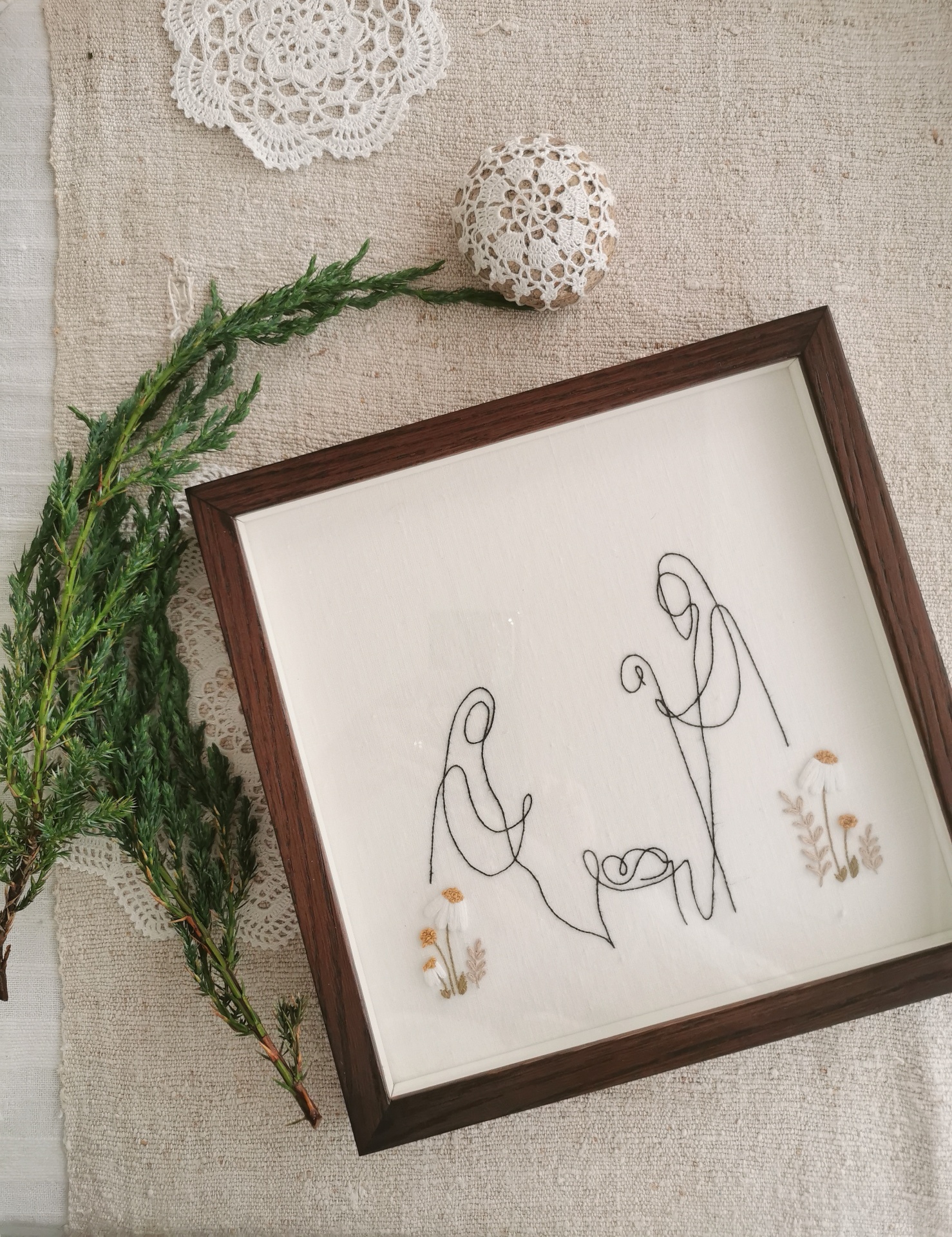 Sagrada Família 68,00 € Desconto de %. Partilhar Comprar Contactar SKU: SF01 Que estas peças vivam para Sempre nas vossas casas - todos os dias! Que possam oferecer às vossas pessoas mais especiais, que guardem memórias e que sejam Amor! Bordado em linho à mão em linho puro moldura de carvalho com tratamento castanho escuro - 23 * 23 cm Bordado à mão por encomenda. O prazo de entrega é de cerca de um mês.