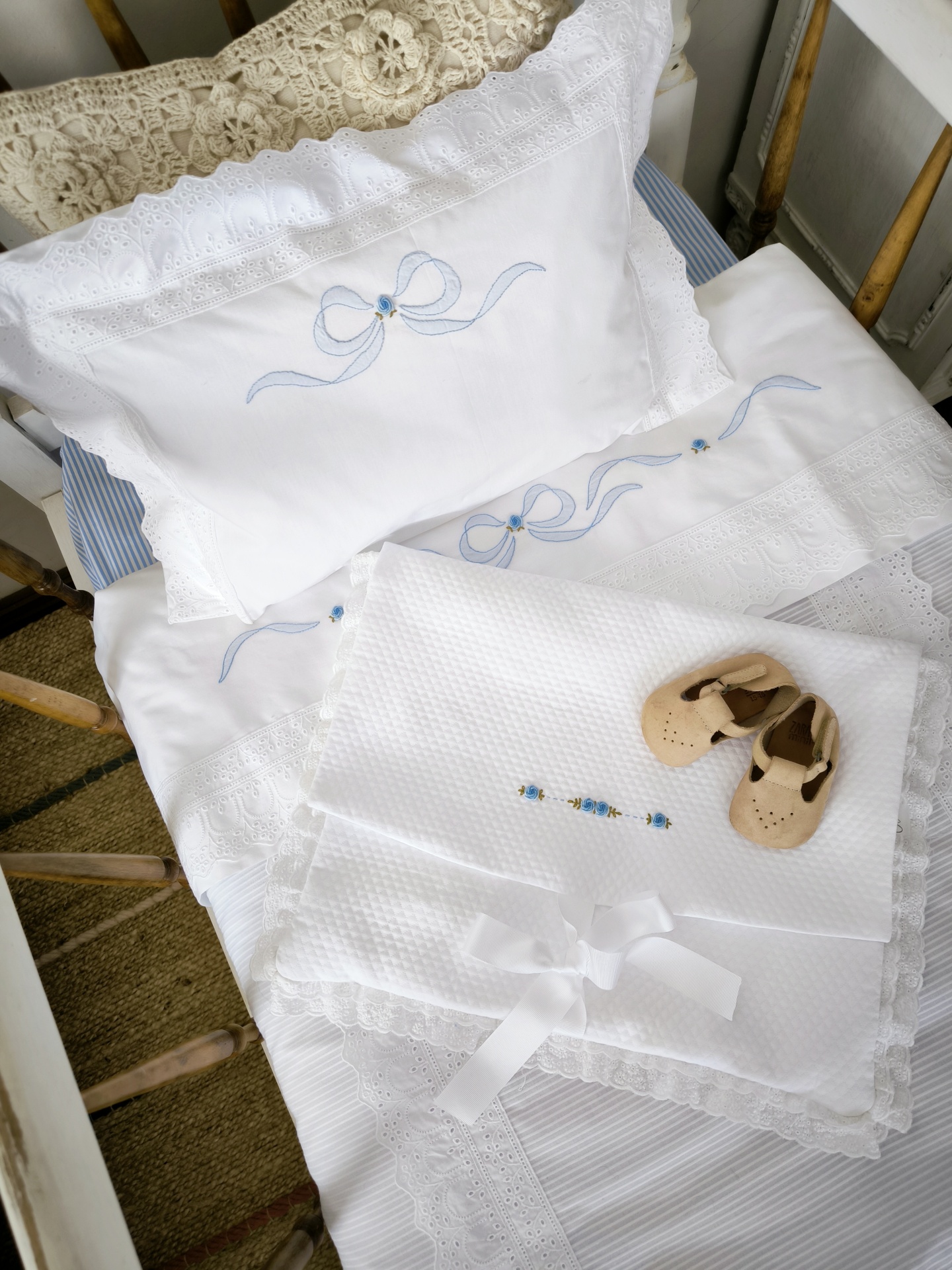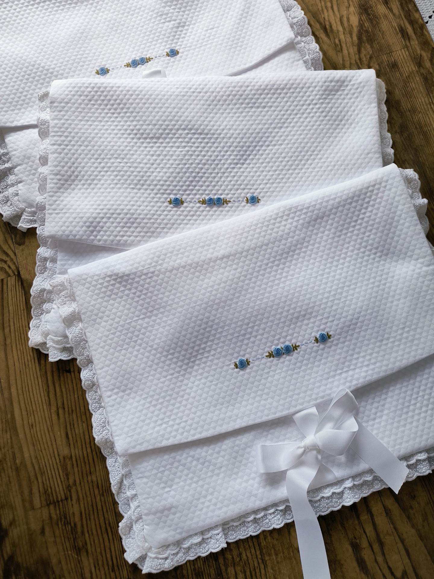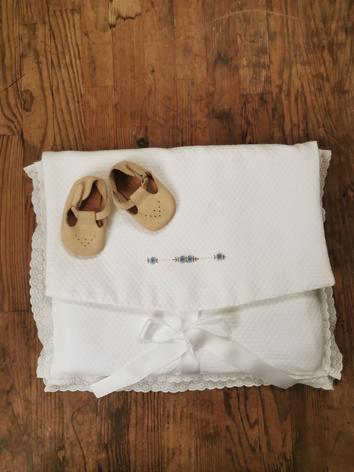 É bordado à mão com bordado de flores. É um modelo clássico e intemporal que queremos guardar para sempre e que poderá ser usado entre gerações!